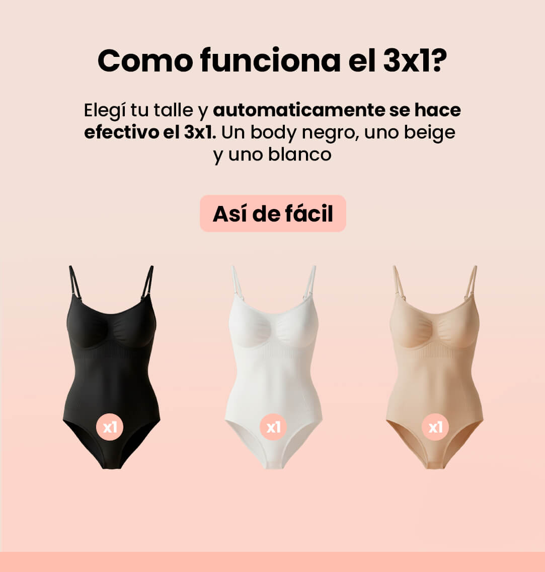 Cada pack incluye 3 bodys modeladores con compresión estratégica.